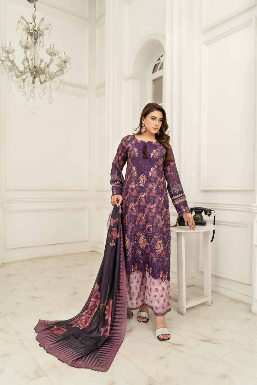 Fabric: Breeze Lawn with Digital Floral Print & Embroidery
