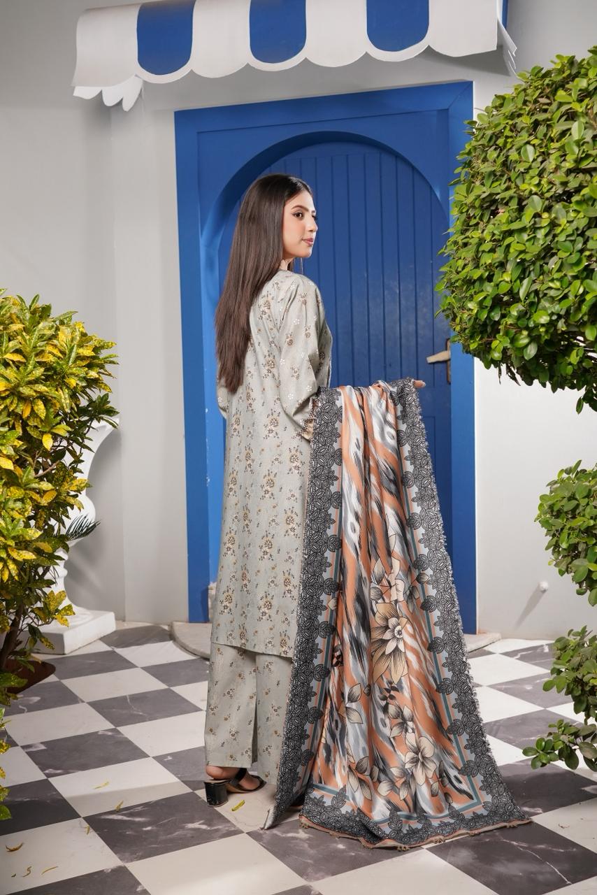 Elara Soft Bloom is defined by its delicate floral prints and balanced embroidery. The elegant silhouette paired with a cozy wool shawl offers effortless charm and winter-ready comfort.
