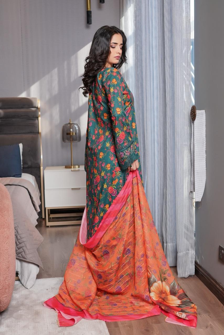 Includes: Embroidered Printed Shirt, Printed Munaar Dupatta, Plazo Trouser