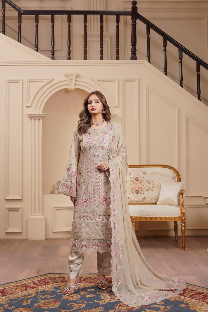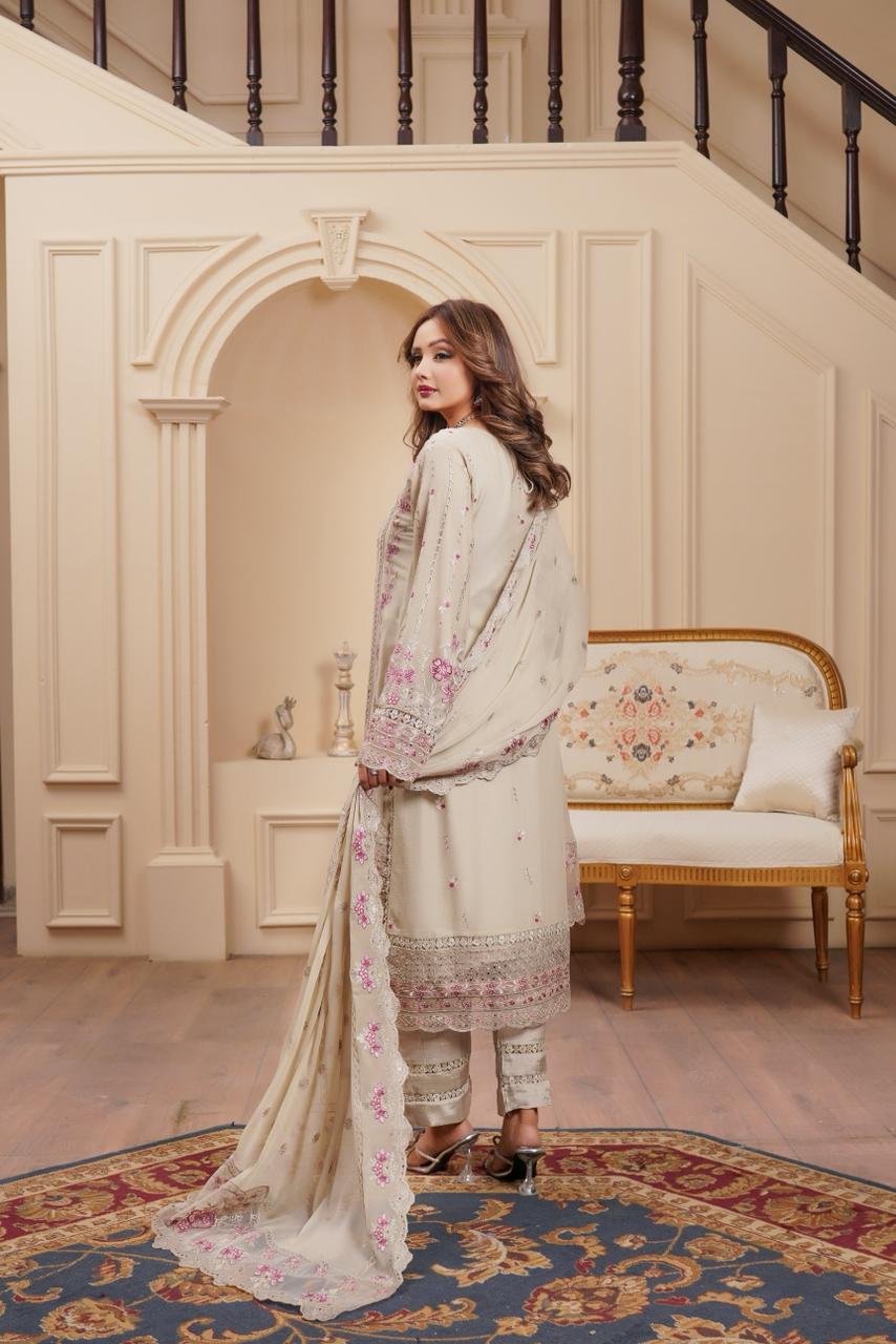 Includes: Embroidered Shirt, Crepe Trouser, Chiffon Dupatta