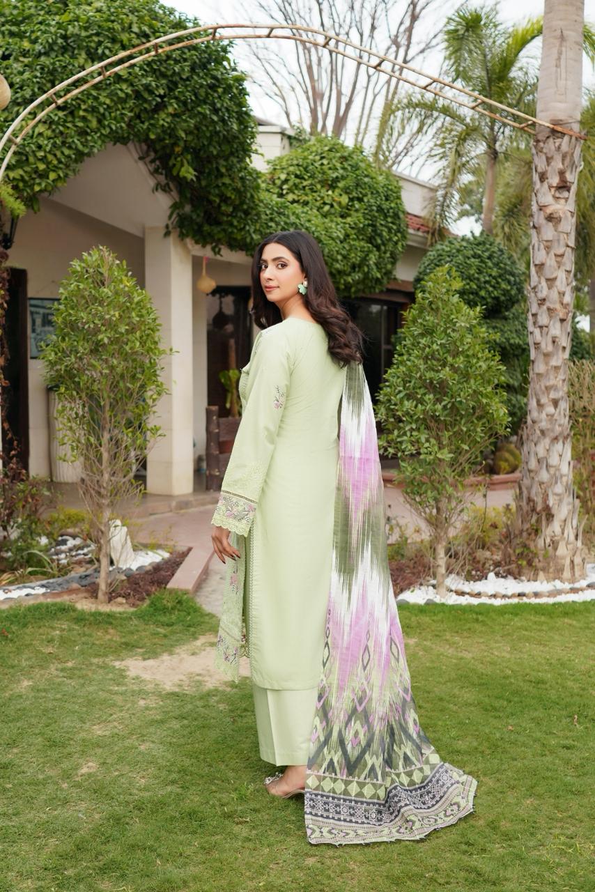 Mehwish captures timeless charm through intricate embroidery and delicate pattern composition. A perfect harmony of tradition and modern finesse.