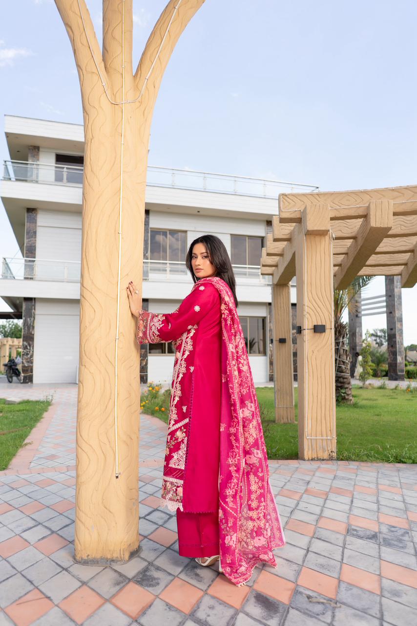 Includes: Embroidered Shirt, Munaar Dupatta, Plain Trouser